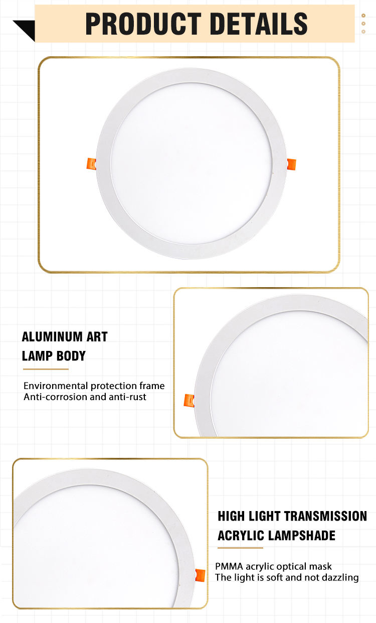 | LED round slim panel light | Φ85mm\Φ120mm\Φ145mm\Φ170mm\Φ190mm\Φ225mm\Φ300mm\Φ300mm | 6500K 4000K 3000K | 40\70\75\80\85\95\95\95 | 80 |